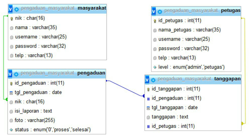 Tugas pertama yang dibuat adalah untuk mengubah database pengaduan masyarakat menjadi: